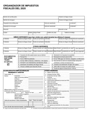 Kelly’s Tax Service Tax Organizer Worksheets